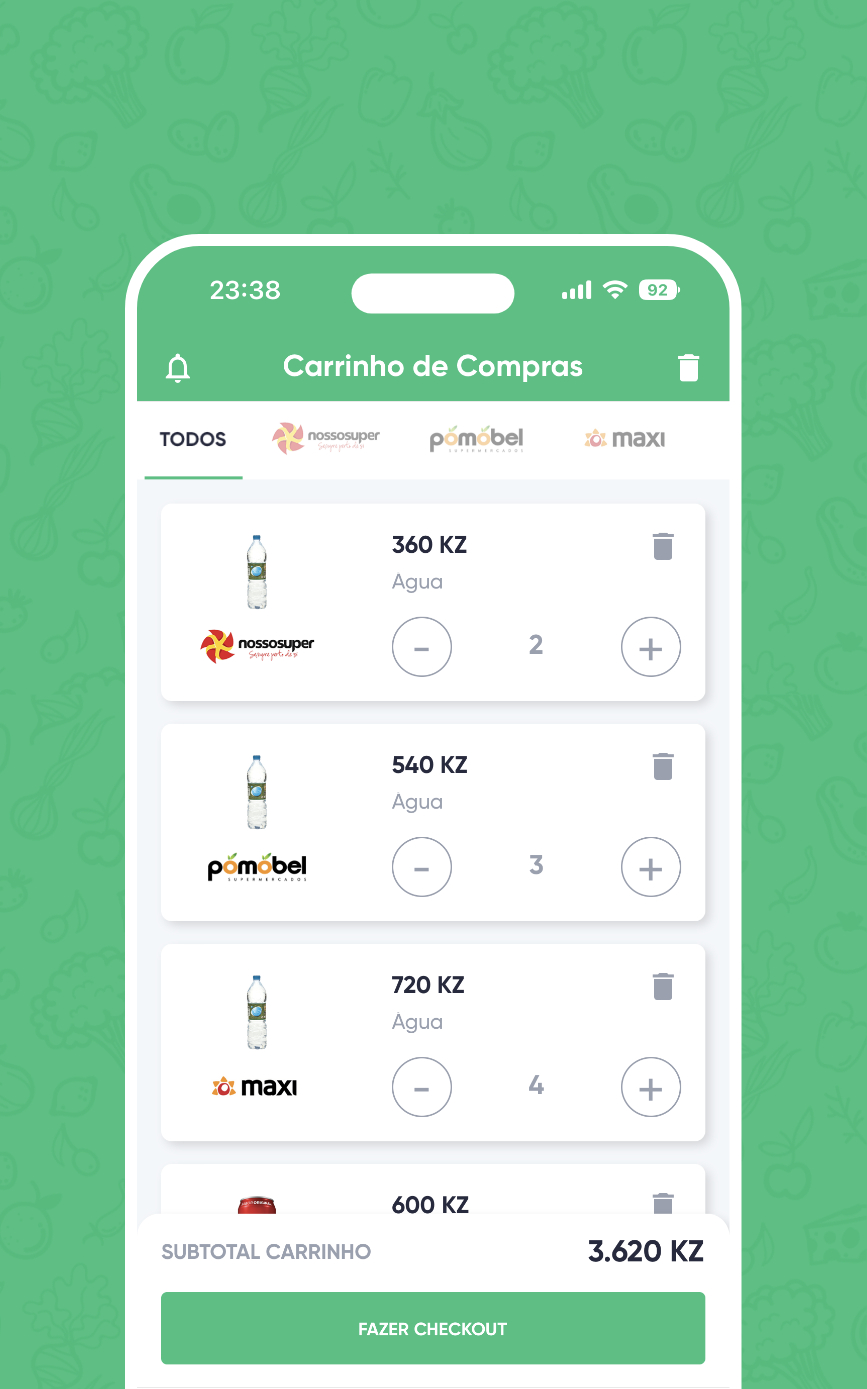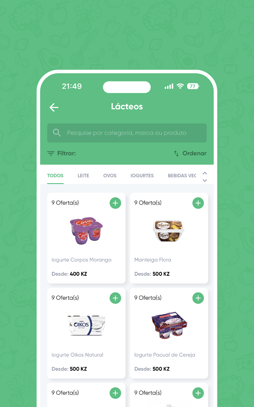 Esteja a par dos preços de mercado, compre produtos frescos, bebidas e utensílios domésticos de forma segura, em diferentes lojas, completamente online com apenas alguns cliques.